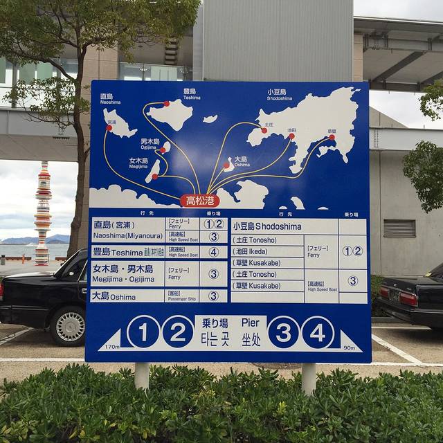 高松 港口的构造如下图,港口有不少艺术设计品,是绝佳的牌照留念处哟~
