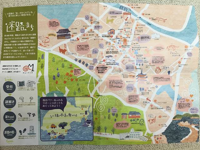 过去,小豆岛曾是濑户内海中海盗的据点之一。据传居民为了躲避海盗,刻意将土庄港一带的道路建造得相当曲折。艺术节作品“迷路之街——变幻自在的路地空间”就位于这样的街道中。“迷路之街”过去是旧香烟店,在高龄的屋主过世后已有约10年无人居住,艺术家将这间外观普通的民宅内部大加改造,设有各式机关,每推开一扇门都会通往意想不到的地方,成为别具巧思的迷宫。