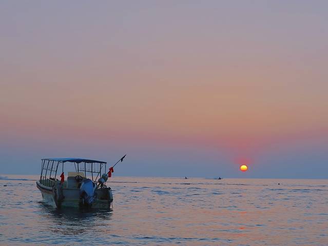第一站:五彩滩看日出5点半起床,从民宿出发大概5分钟就到了。我们去的算很早的,找了一个绝佳位置等日出……一个小时后,发现是个假日出