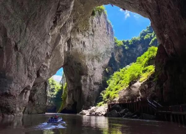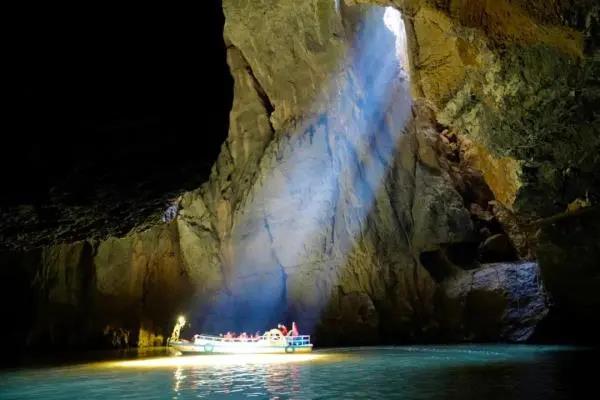 坐船而下,可观赏到千姿百态、气势磅礴的自然景观。下游约2公里处,有九个伏流“洞口”,称“九洞天”,依序排列为月宫天、雷霆天、金光天、玉宇天、葫芦天、象王天、云霄天、宝藏天、大观天,每个“洞口”周围都有奇特的熔岩景观,形成了风格迥异的伏流洞口风光。