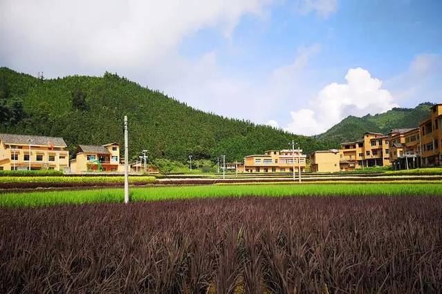 高峰村,一幅乡村振兴的美丽新农村画卷在山间徐徐展开。其中种植的彩色稻田,在田间交织错落有序,别致的小洋楼与五彩稻田交相辉映,犹如一幅五彩斑斓的画卷。