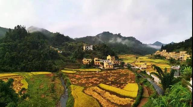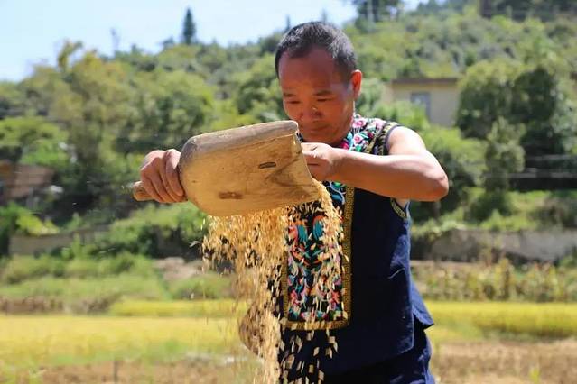 满眼的黄延伸到天际,山风吹来,翻滚着金色的稻浪。来回穿梭稻田中秋收的季节,每一份辛劳都有金黄的收获。