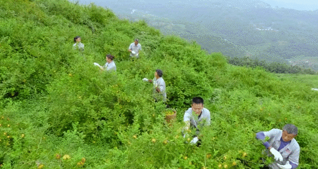 到了刺梨丰收期,成片的刺梨树上挂满了金灿灿的果实,个头饱满的刺梨果压弯了枝头,连空气都弥漫着浓浓刺梨香。