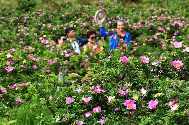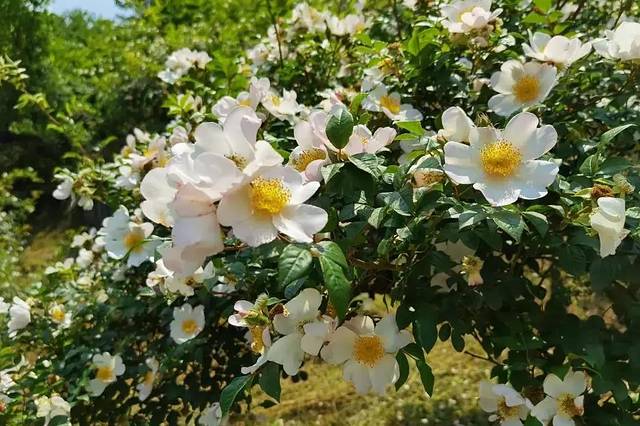 每逢初夏时节,刺梨花竞相开放,微风吹来,香味弥漫山间,令人陶醉不已,不少游客纷纷走进园区,与朵朵娇艳的刺梨花合影留恋。