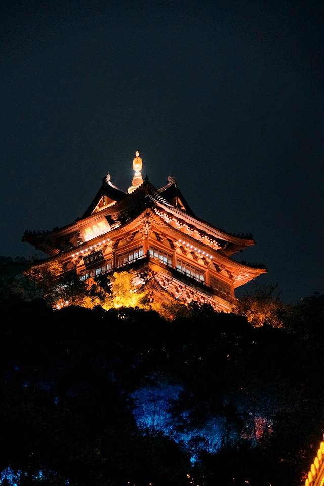夜幕降临,星光之下的西津渡与白天风格迥然。水面倒映的古建筑,灯火阑珊,浪漫至极。