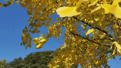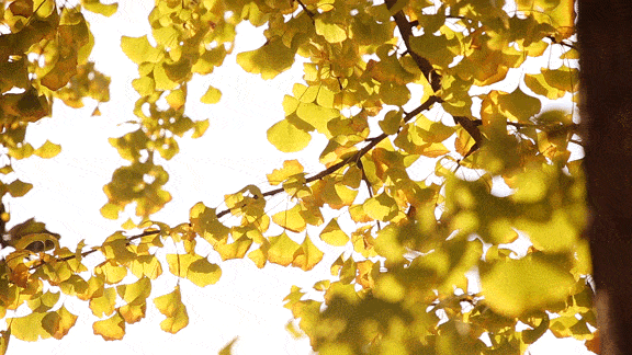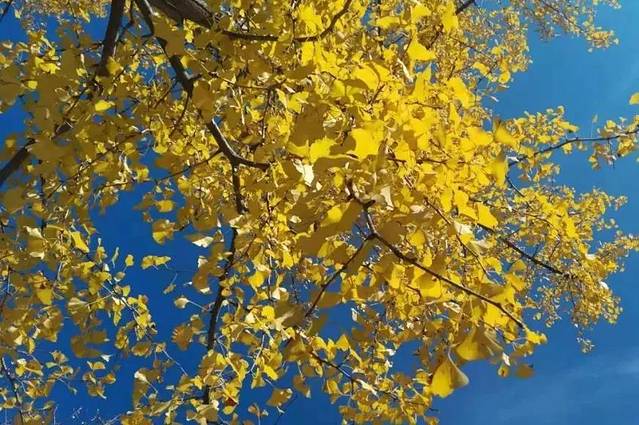 抬头,可见挂满树枝的金灿灿的银杏叶,低头,满地黄澄澄的落叶,远远望去,金色银杏叶在阳光的照射下闪着金色的光芒,眼前这一切使原本萧瑟的秋季充满融融暖意。