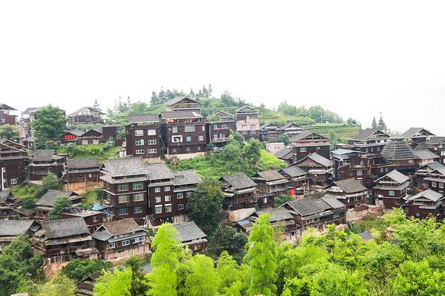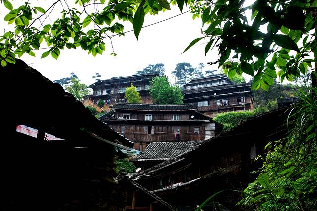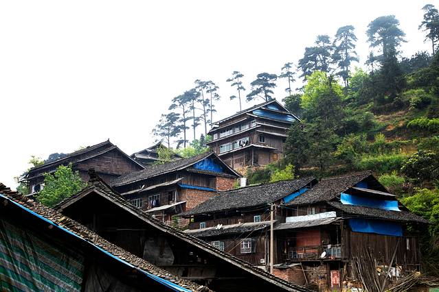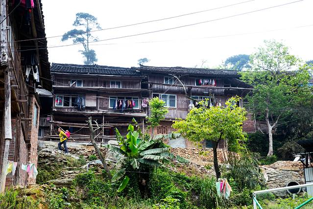 净代村的民居基本是围绕着道路两侧依山而建,山下是梯田,从高空俯视,一栋栋建筑隐秘于草木之下,从远处看有些房屋隐没于山林之中,依托山的地势让我们外人看起来是多么的美。这里不像高旁村那样有着大片的梯田,山林为主,梯田数量有限最大的收入来源就是靠采茶为主,新鲜茶叶十块钱一斤,从早上一直到晚上也就赚七八十块钱。从村子沿着山道翻过山便到达肇兴侗寨,走惯了宽敞大路追求探索原生态的自驾者不失为一条不错的小人文路线。