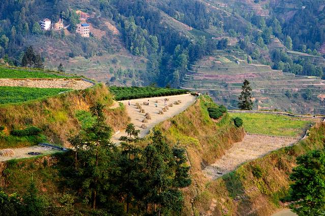 梯田上大人们在忙着农活,几个孩童在田中玩耍着,虽无法看清他们的神态,但从他们奔跑的样子我看到了处于深深山之中儿童的快乐方式,这样的画面对于我一个外人来说是那么的惬意,实际上是多么的值得思考。