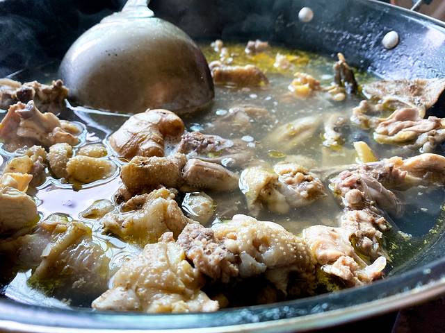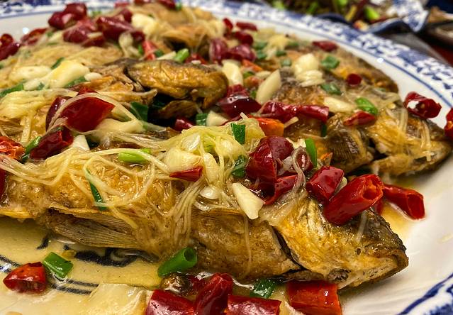 到了湘贵桂这三个省交界的少数民族梯田山区,不得不说的就是禾花鱼了,一种体色乌黑透亮的鲤鱼品种,即乌鲤,主要在南部山区,广西北部一带;禾花鱼取鱼苗在水稻稻田中养殖,因采食落水的禾花后长大,鱼肉具有禾花香味而得名禾花鱼。比较常见的做法就是将鱼刮麟清肠后用油煎至金黄,加蒜、葱、干辣椒等翻炒加点水焖出香味。