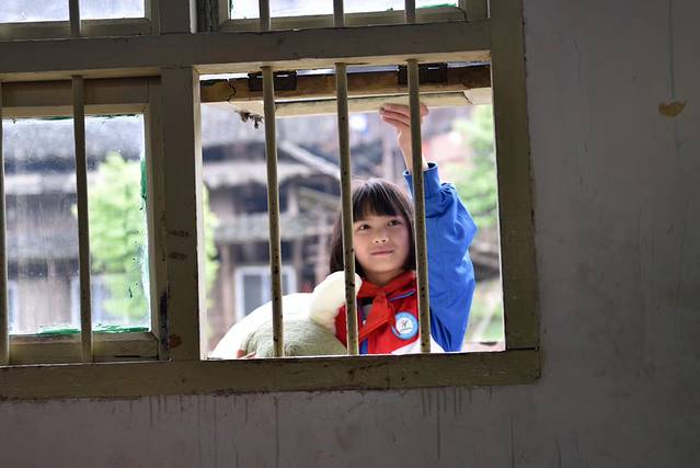 路过的孩童许是害羞,躲在楼上看着陌生的人,在她的脸上我看到了许多留守儿童特有的稚嫩与孤寂。