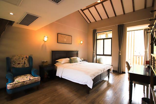 这个酒店是由此地的旧校舍改建而成,占地8亩却只建了22个房间。而在选材时只运用了黄泥、黑瓦、翠竹等源自大山的材料,源于自然,融于自然,只为给你最自然最美好的度假住宿体验。