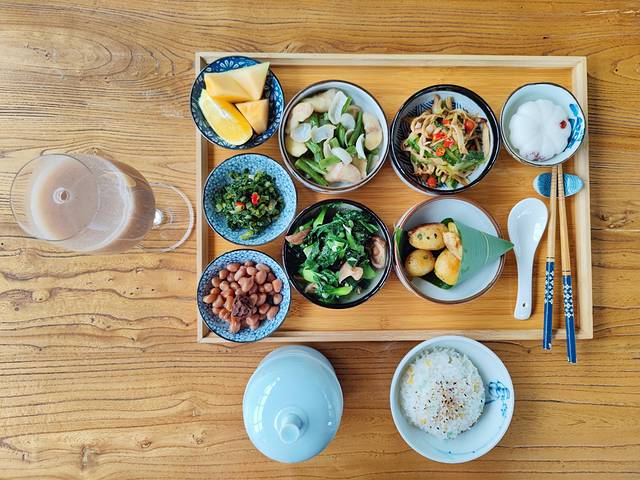 竹子为材的餐厅,处处透着草木清香。玉米、素蔬、笋丝,咀嚼间仿佛亲眼看见莫干山上的竹笋一个个破土而出,舌尖上清新的味觉像是春天万物刚刚苏醒。难得,在这里,在竹子搭建的工艺餐厅享受一顿来自自然的舒服素餐。