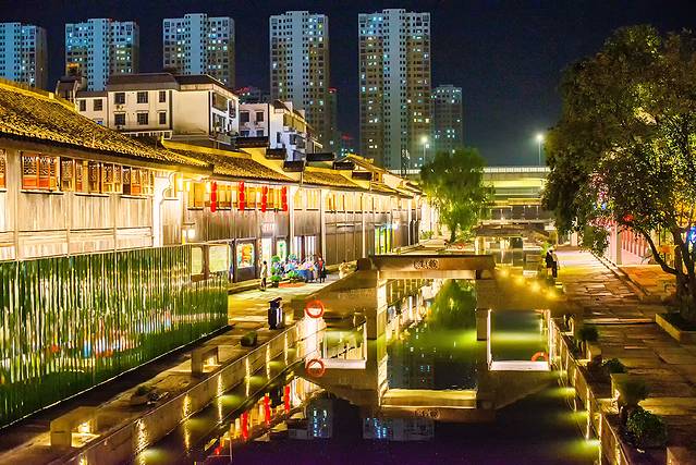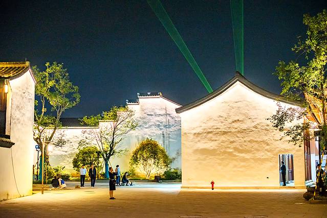 夜晚的柯桥,一河二街,三桥四水,绍兴台门,青砖白墙在暮色灯光里适着灵气。梦起笛扬、霓光水巷、流光水塔、听撸夜航、千古胜景、晓月落庭、醉花陈酿等各种主题灯光秀,在古镇的各个角落上演,如梦如幻,韵味十足。