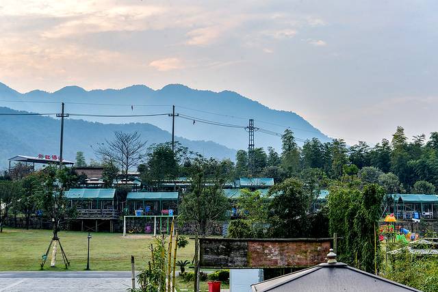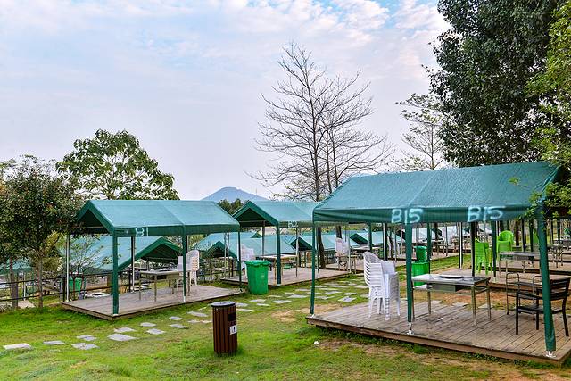 再往前走,还有一个满天星露营基地,一水的木台白棚整齐划一的陈列在一个大大的有着绿草坪的院子里,院子外围密密麻麻的种了青竹,增加风情也保护隐私。