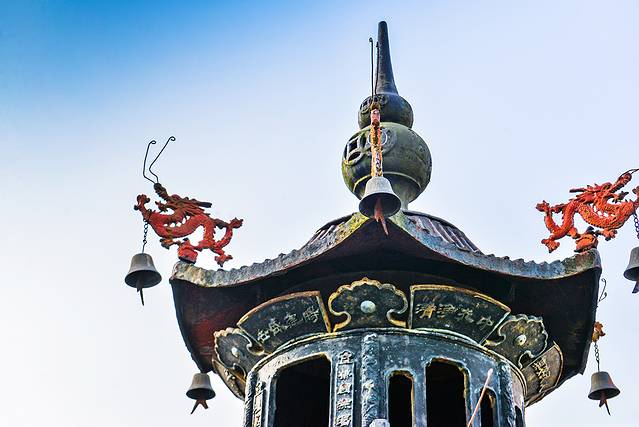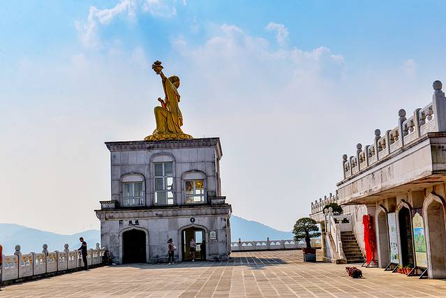 第一次知道兜率天,是几年前家属去柯桥拍回的照片,那样夺目的金莲花顶,一眼就记心底了。到兜率天第一件事,拍了张照片发给他:你看,我跟着你的脚步,来走你走过的路,来看你看过的风景啦~