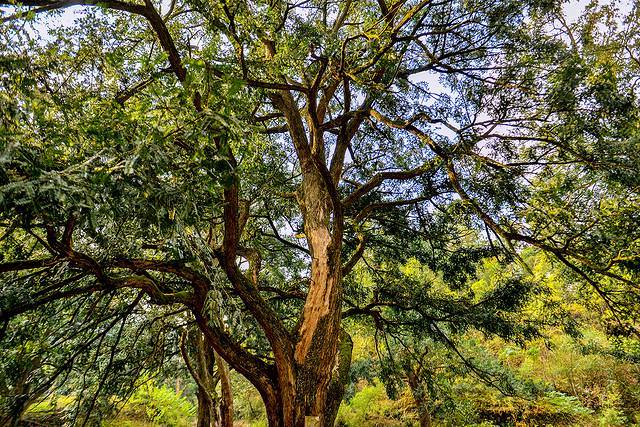 很早之前就听说过绍兴的千年香榧林景区,这次柯桥之旅,终于找到机会来打卡。这个地方着实是个森林宝藏,整座山的榧树,随便看了下树上挂着的介绍,动不动树龄就是500年,700年,900年,每一棵都是珍宝,最早的甚至高达1500年,被称作“千年活化石”。