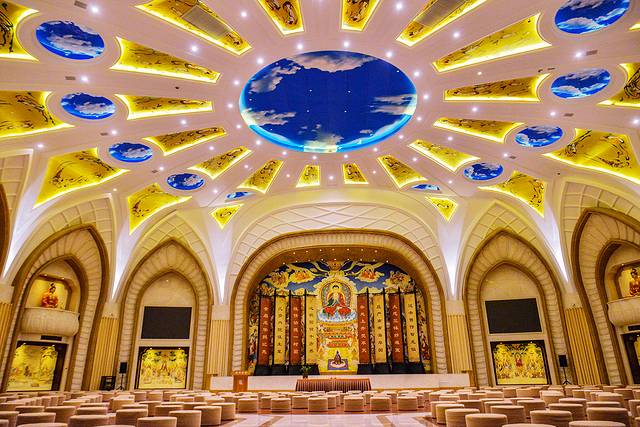 这是位于兜率天宫第十三层的善法堂,也是个千人大讲堂,这里亦被称作“南怀瑾大讲堂”。南大师生前提倡儒释道三教合一,他认为人都应具备佛心、道骨、儒表。如果人人都具备“佛心、道骨、儒表”,就一定能创造出一个包容、和谐、快乐的世界。