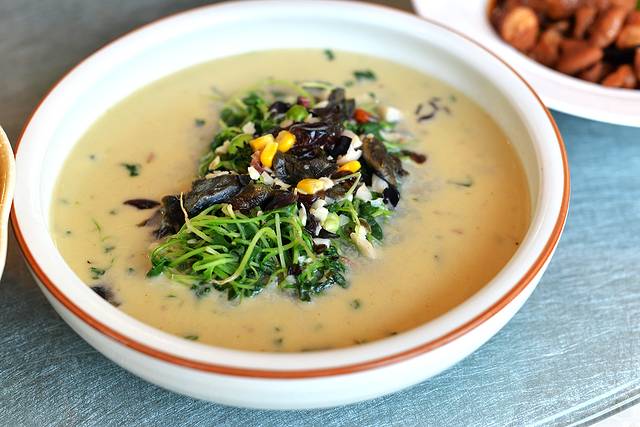 龙华寺有可同时容纳500人的禅堂和斋堂,有散台亦有包间,里面有各种菜式可供选择。我们人多,叫了个包房,按位收费,每客100元。