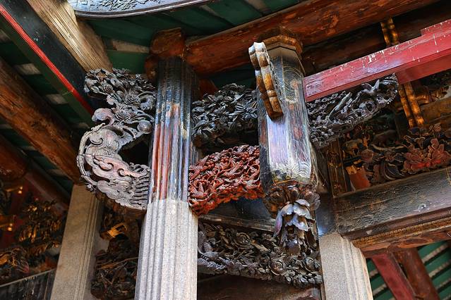 从熙公祠中心部位的梁上,这边可是真正的木雕了,综合了很多元素,花、鸟、盘龙的样式,非常的繁复精致,光光欣赏它,问都感觉时间不够用,可想当年,制作这木刻的工匠艺术家,可是付出了多少的时间精力和汗水?