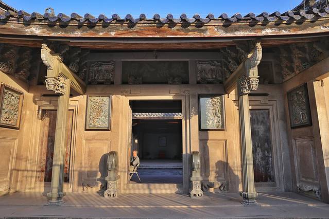 大门里头有几个老爷爷在喝茶聊天,气氛相当融洽,我的到来都怕打搅了他们。从熙公祠免门票,按照爷爷的指示做了登记,出示了健康码,然后开始欣赏起来。老爷爷过来给我介绍门梁上的石刻,不说是石刻我真的没看出来。我以为那是木雕,因为那个雕刻实在太精美了,而且还有很多镂空的地方,能把石头这样雕,我真是看到头一回。