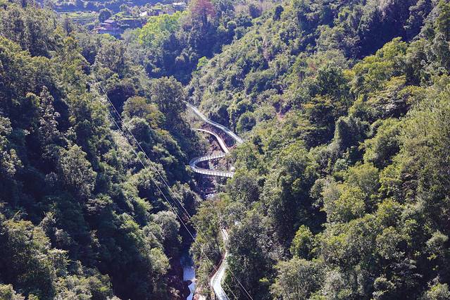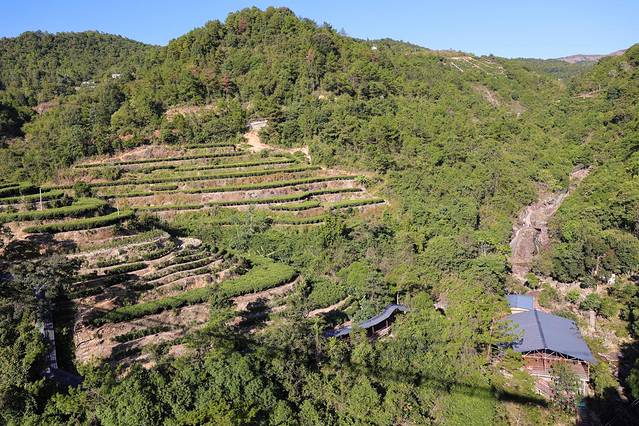 凤翔峡,山上有开垦的茶园,梯田在山间,也是一道亮丽的风景线。