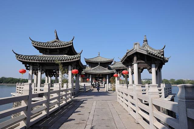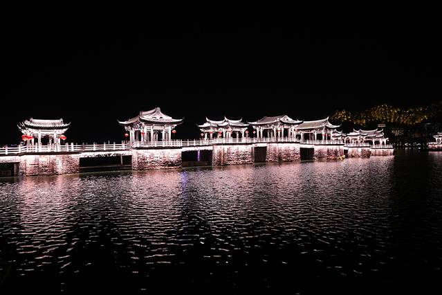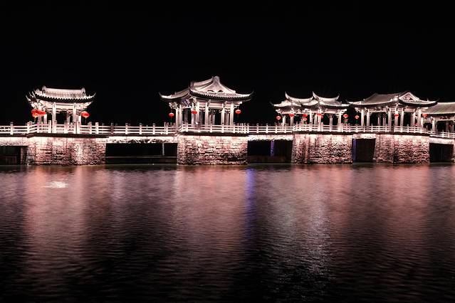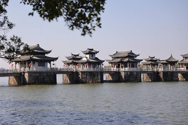 潮州的广济桥,是世界上最早的启闭式桥梁,它横卧于滚滚韩江之上,中和了集梁桥、浮桥、拱桥于一体,既有宫殿的威严,又有浮桥亲水的浪漫,浮桥可根据需要开启或关闭,既美观又实用。现在广济桥可是广东省的经典景点之一,傍晚的广济桥,灯光开启,夜景迷人。