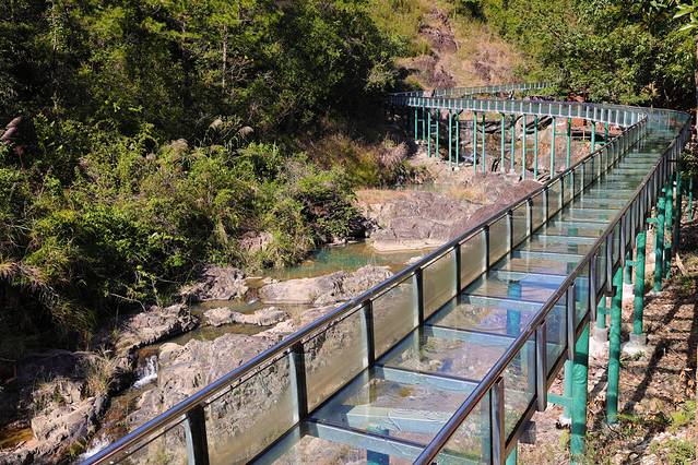 在凤翔峡,有一条长长的S型水滑道,可以从半山腰一滑到底,推荐夏天的时候尝试,既清凉、又刺激,其实它的坡度不太大,在上面滑很安全。