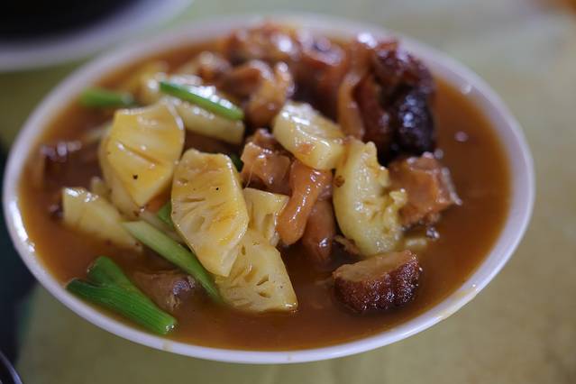 菠萝鸡,又是甜的,我觉得挺好,虽然嗜辣如命,偶尔换两顿清淡的也很适应,潮菜一直都喜欢,在广州就有好多不错的潮菜馆呢!