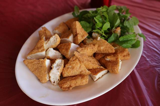 浮豆腐,配上薄荷叶,好看味道也不不错。