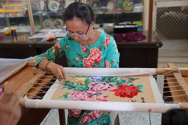 来到潮绣馆参观,可谓是赏心悦目的一个小时,老师飞针走线,这次有幸亲眼看到潮绣的精彩瞬间。
