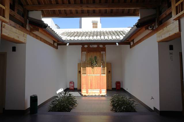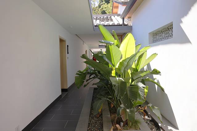 中间一个天井,阳光照下来,天井里的绿植,活力满满,阳光雨露都不曾少缺。