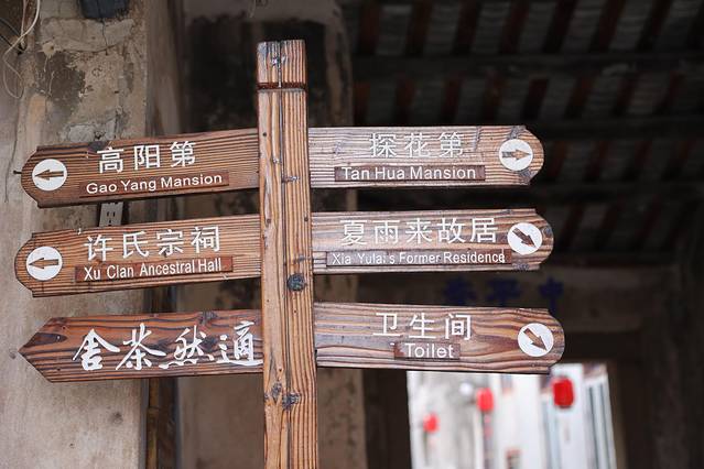 这里有个路牌,告诉我们哪里有什么景点、古民居可以参观