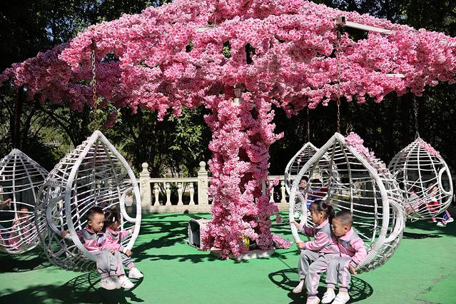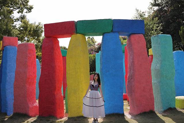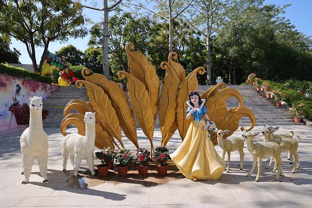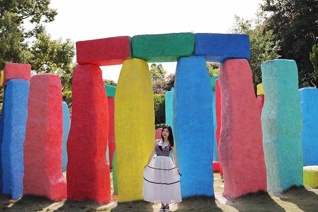 也有小清新的一角,这边摆了一些石凳子,游客可以坐下来休息休息