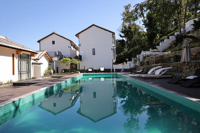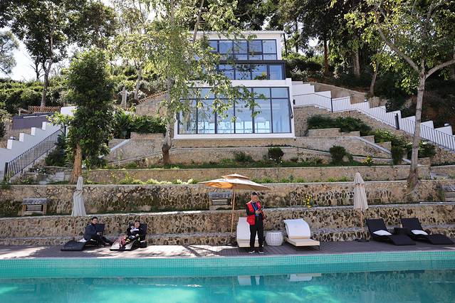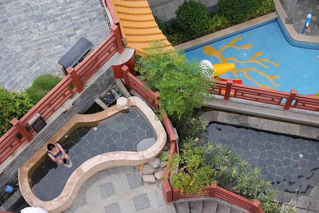 走到里面,一个大泳池,吸引了我们的眼睛,这也太美了呀!要是夏天,我都跳进去了!为了这个漂亮的大泳池,下个夏天真的值得过来住一晚。