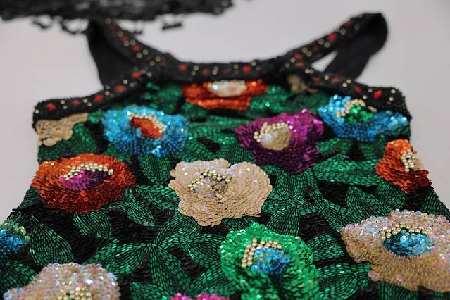 重工制作的潮州珠绣礼服,花朵和绿叶都是立体的,穿在身上闪闪发亮。