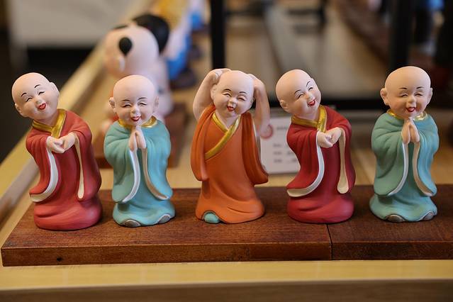 笑容可掬的光头禅服小娃娃,动作各异,非常讨人喜爱。