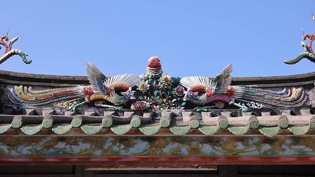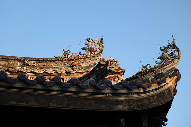 太喜欢潮州的嵌瓷雕了,蓝天就是它的背景,色彩亮丽,慰藉人心。