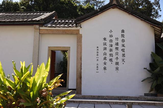 茶博物馆里的建筑,简单又素雅,读这面白墙上的诗句,老舍的浪漫情怀,使得这里的文雅气氛又增添了一分。