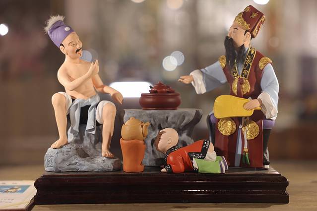 富员外和穷农夫一起同饮功夫茶,从古代起,功夫茶已是一种社交手段。