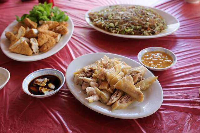 在潮州旅行,随处都能邂逅潮州美食,从潮州凤凰单枞茶博物馆出来已是中午,过这间东兴大排档,不同于其他的餐厅,当时午餐时间坐满了人呀,大家一致决定在这里吃午饭。我们就照着墙上的海报点了几个招牌菜,真的没翻车,每一个菜都好吃,白切鸡,鸡肉原味美美哒、浮豆腐,配上薄荷叶,好看味道也不错;鸡肠粉,其实就是好吃的水晶粉;野菜,一个好好吃的蔬菜,全部光盘搞定。