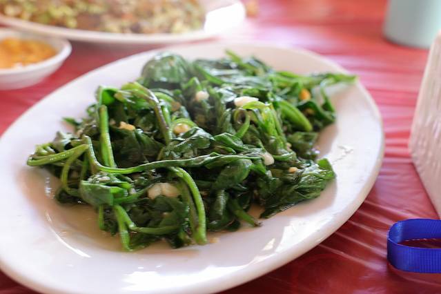 野菜,实在没问出学名来,老板就叫他野菜,味道不错的哟。