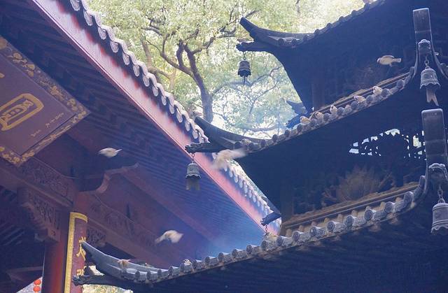 在香炉和寺庙之间,麻雀飞来飞去,如有灵性。很像尼泊尔加德满都广场上的鸽子的感觉。