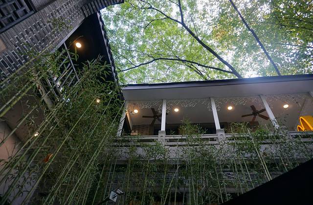 更让我有好感的是这条街道,很日系风,很世外桃源,一条宽阔的小石子路,两边都是唐式的落地门样式,在晚上万家灯火的时候安安静静的散步,恍如回到了古代。本身杭州边上的山水就很隐秘安静,这里更加。