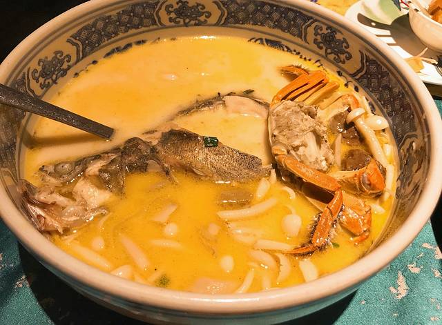 招牌菜 私房鳜鱼。我们家乡菜也有这道,是鲫鱼螃蟹汤,很鲜,所以没有惊喜,可能没吃过的会很惊艳吧,有鳜鱼的鲜,螃蟹的鲜和蘑菇的鲜加在一起,超级鲜。