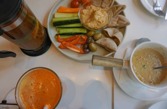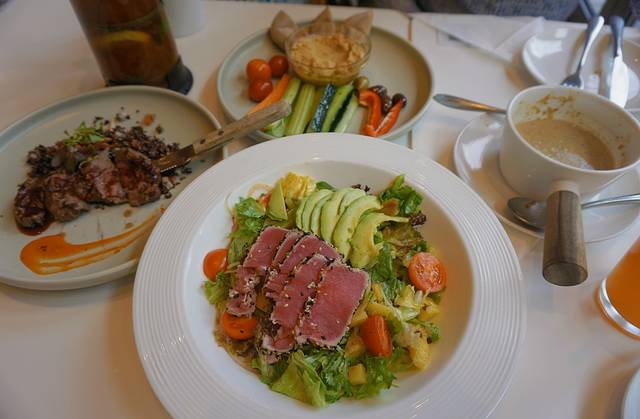 阿拉伯风味的吃不来,咸橄榄是真的咸,但是牛油果沙拉不错,菲力牛排特别少,最好评的是香米布丁,和草莓乐园果茶,没有加糖,甜而不腻,特别好喝。还有一杯鲜榨的胡萝卜苹果生姜汁,对我热爱尝试新东西,所以点了生姜,果然不喜欢喝,最后喝不完打包倒进保温杯带回家了,我家吃饭基本上常常打包,不浪费。