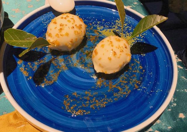 这是有名的金桂山药,桂语山房也有这道,刚好在这里尝尝,还便宜点。是冰冻的甜品,刚拿出来硬邦邦的,要等全部吃完再吃,还是很硬,如果软下来估计是比较Q弹吧,现在就是很硬很冷的泥膏感。