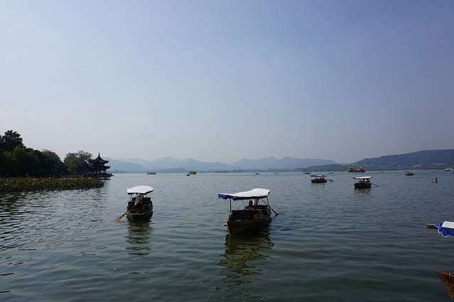 心心念念要坐游船的,妈妈没有坐过西湖的游船,而我是十年前坐过手划小船去看三潭映月,也很久了。