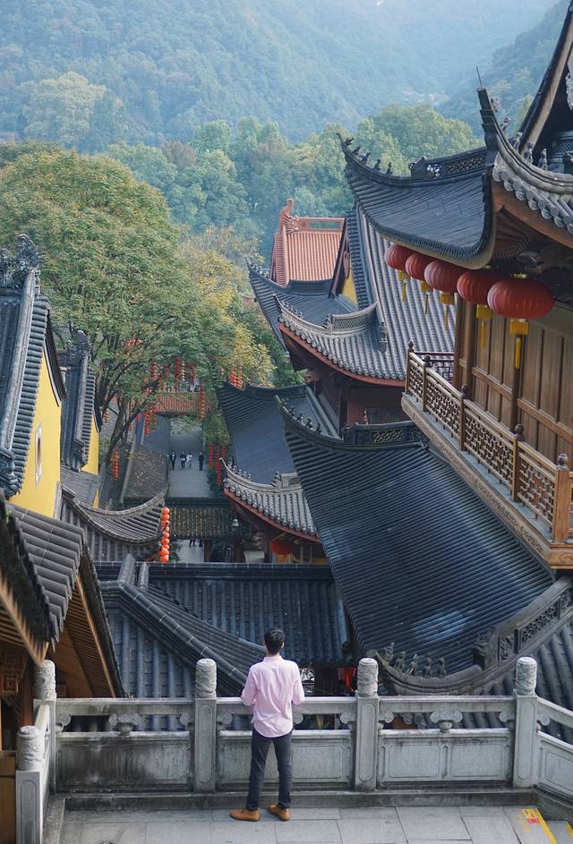 这段廊桥很多台阶,好几层楼高,所以拍下来才会庙宇屋檐层层叠叠,景深极为好看。
