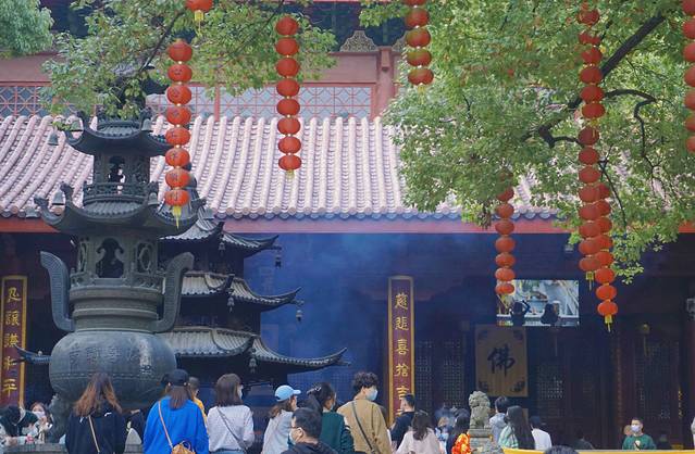 出于尊重,进寺庙是不能拍菩萨佛祖的,但是氛围又极好,烟雾缭绕下,善男信女们熙熙攘攘,都很虔诚的求着自己的心愿。