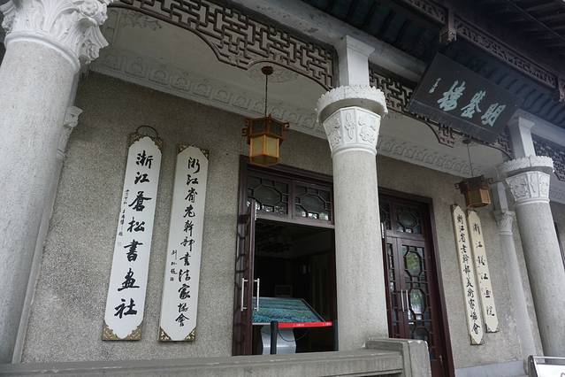 其实要说的不是平湖秋月,是对面的明鉴楼,以往来杭州出差都是跑南山路的苏堤锻炼,白堤反而没有好好走过,今天走一走发现有个书画院“明鉴楼”